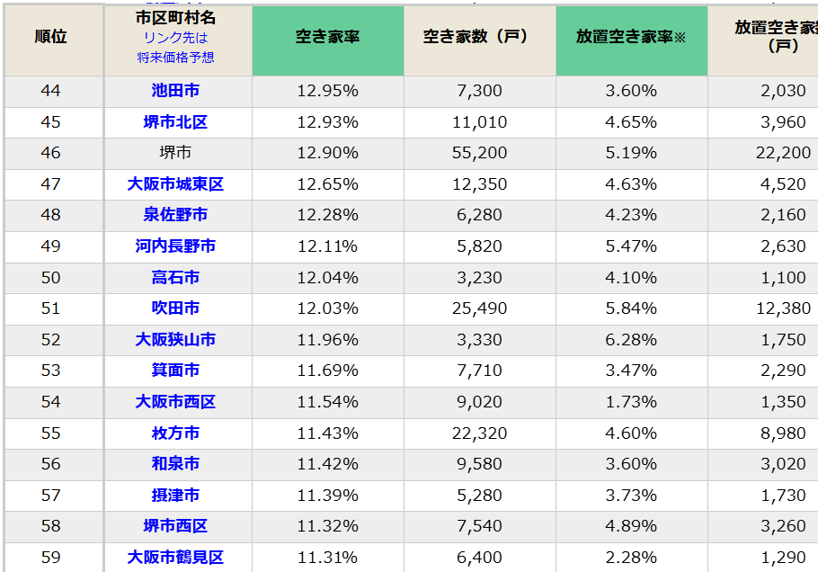 (11.43% 大阪府内55位:参照 ダイヤモンド不動産研究所)