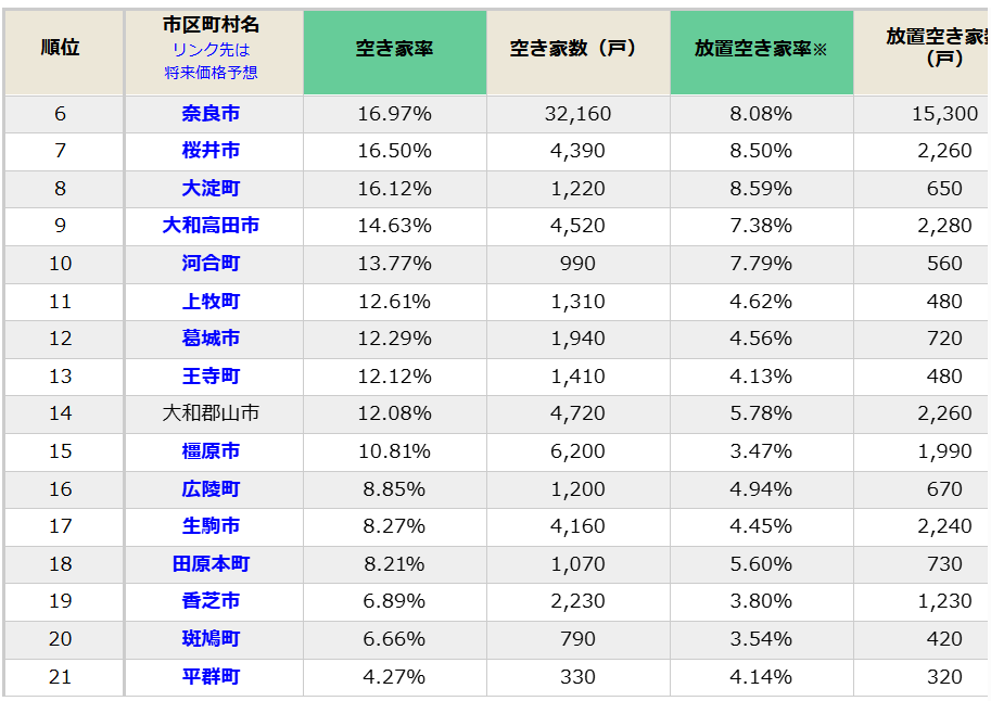 ※生駒市の空き家率(奈良県内17位)・・・詳しくはコチラ(参照:ダイヤモンド不動産研究所)