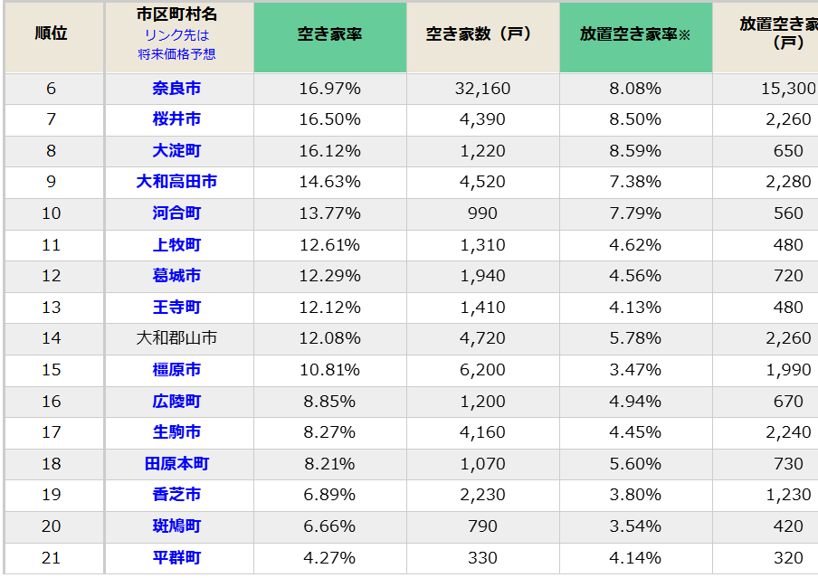 ※奈良県生駒市の空き家率4.45%:奈良県内17位(参照:ダイヤモンド不動産)
