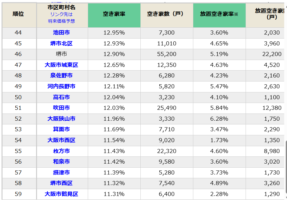 ※大阪府高石市の放置空き家率4.1%・・・詳しくはコチラ(参照:ダイヤモンド不動産研究所)